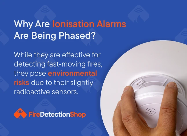 Ionisation alarms are gradually being phased out due to certain disadvantages. While they are effective for detecting fast-moving fires, they pose environmental risks due to their slightly radioactive sensors. Disposal of these devices must be handled carefully, as improper disposal can harm the environment. Additionally, these devices are more difficult to transport because of the radioactive materials.