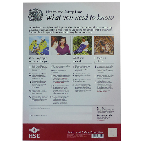 The Health & Safety Executive (HSE) first introduced the Health & Safety Law Poster and leaflet in 1999. Under the Health and Safety Information for Employees Regulations (HSIER) all employers (even if they only employ 1 other person) are required to either display the poster in a prominent location on all business premises or provide each employee with the leaflet. In 2009, the HSE introduced an updated, simpler version of the Health & Safety Law Poster.