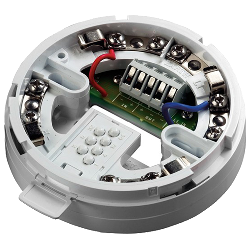 The Isolating Base senses and isolates short circuit faults on system loops and spurs. The base is loop-powered, polarity sensitive and accepts the XPERT card to set the address of the associated device. In short-circuit conditions the integral yellow LED is illuminated.