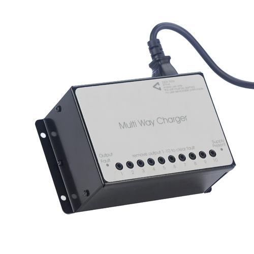 A ten-way plugtop charger designed for use with Quantec's QT412 range of IR/RF transmitters