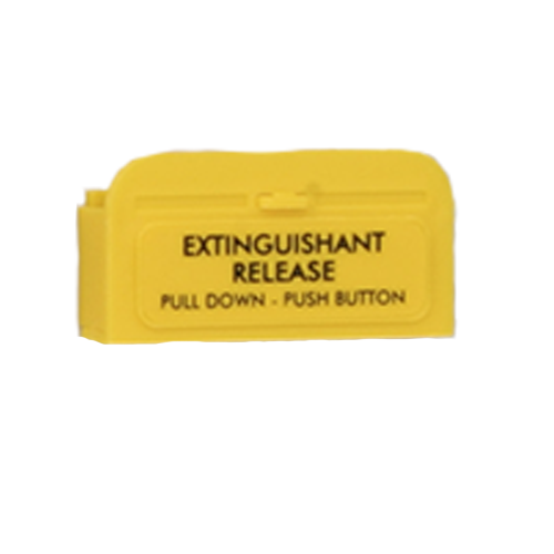 Replacement yellow 'EXTINGUISHANT RELEASE' flap for Kentec Sigma XT range.