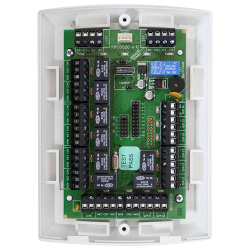 The 8R 8T is an output expansion module that allows you to add an extra 16 outputs to your system. These comprise of 8 relay outputs (NO or NC) and 8 transistorised outputs.