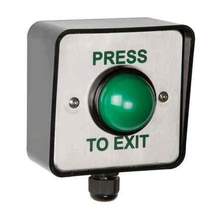 RGL WP-EBGBWC02/PTE | Weatherproof Stainless Press to Exit Button - Green Dome